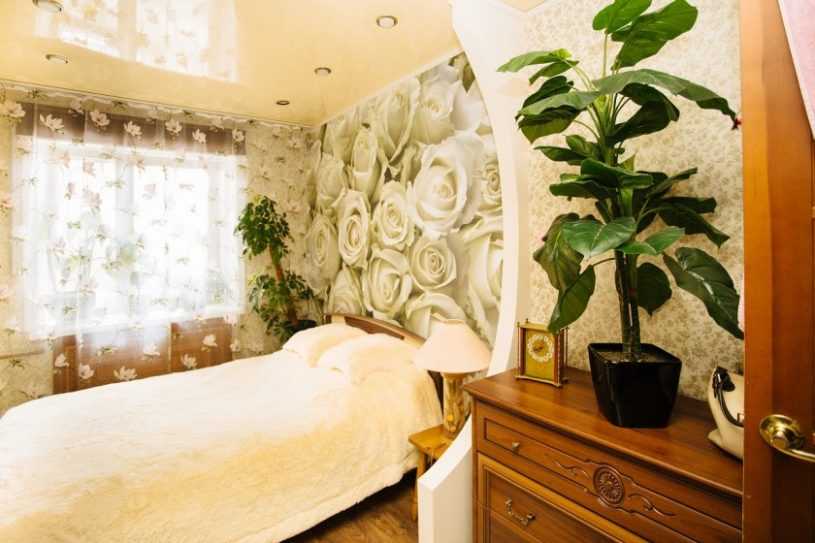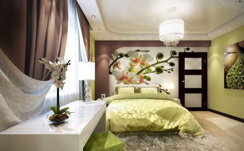 Сюда входят цветы. Яркие комбинации нескольких схожих оттенков или выбор крупного реалистичного цветка – прекрасный универсальный вариант. Можно остановиться на изображении вьющихся цветов, будто падающих на изголовье кровати.