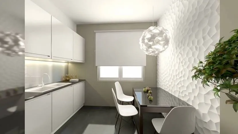 Светлая кухня из 3д панелейИсточник stickerwall.com.ua