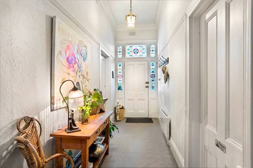 Прихожая. Подвесной витраж с подсветкой — хороший вариант для помещения, в котором нет окон.