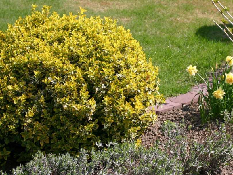 Бересклет Форчуна. Вечнозеленый стелющийся кустарник, достигающий максимальной высоты 60 м, а в длину до 3 м. Родом данное вечнозеленое растение из Китая. Стебли Форчуна соприкасаются с землей, благодаря этому кустарник способен цепляться за разные опоры. Бутоны на пике зрелости зеленые или белые. Плоды имеют ярко-желтую окраску, но они ядовиты, как и у всех из семейства Бересклетовые. Это яркое вечнозеленое пестролистное растение любит увлажненную плодородную почву. Прекрасно переносит стрижку. Подходит для озеленения парков, садов, скверов.