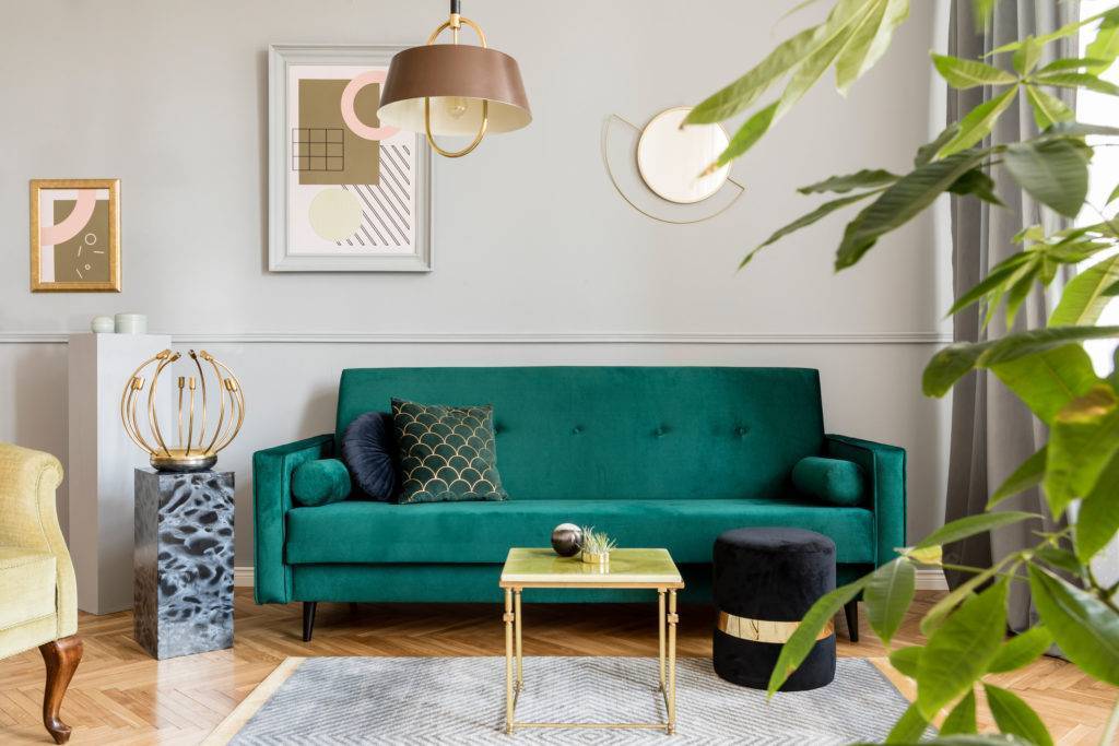 Интересными предложениями на 2020 год также являются мебель из переработанной пластмассы или древесной стружки, например, имитация керамики или мрамора МДФ с цветными цифровыми принтами. Какая мебель для гостиной будет модной в 2020 году? Для обивки диванов и кресел лучше всего выбрать эксклюзивные модели с видимой текстурой или ткани с добавлением шерсти. Обивочные ткани букле, то есть из так называемых петель и все материалы с грубой, выпуклой текстурой. Бархат также будет оставаться популярным, поэтому вы можете легко выбрать велюровые наборы для отдыха. Среди новинок 2020 года также можете найти диваны, обитые натуральной кожей, имитацией верблюжьей шерсти или терракоты.