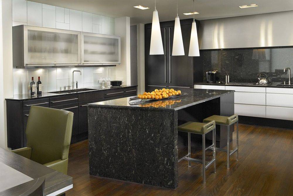 Чтобы создать на кухне спокойную атмосферу и не отвлекать фоном, следует минимизировать количество ярких и контрастных деталей. А если есть желание оживить это помещение, то их количество следует увеличить. Пример такого подхода можно увидеть на дизайне кухонь, начиная с более строгого.