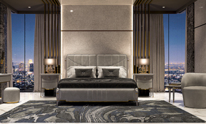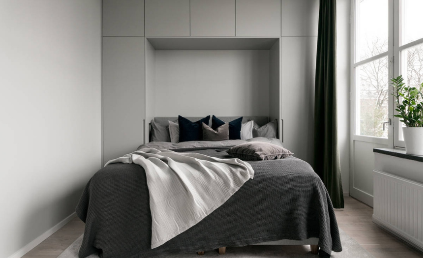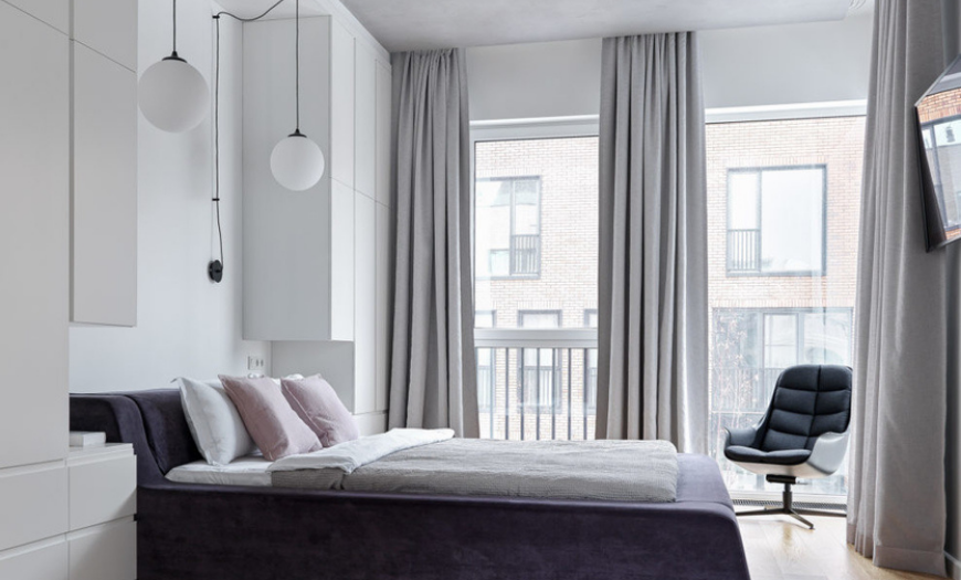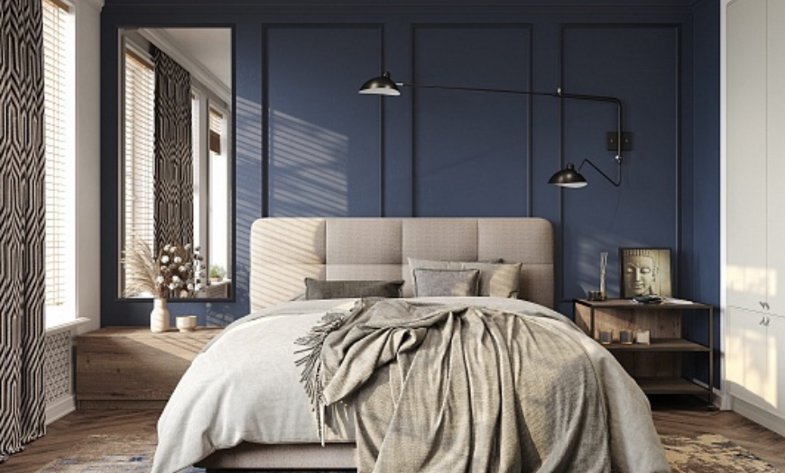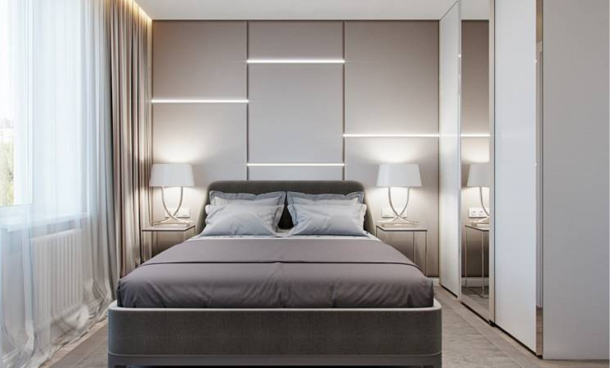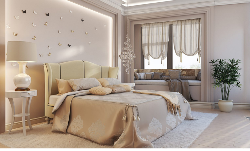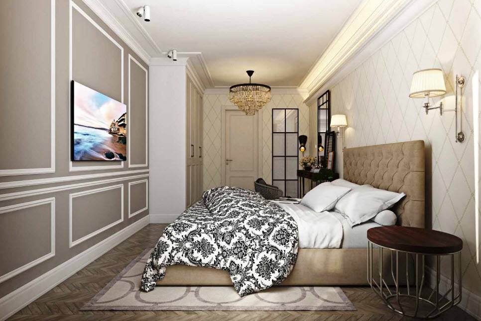 Малогабаритная спальня в современной классике с красивым декорированиемИсточник behance.net