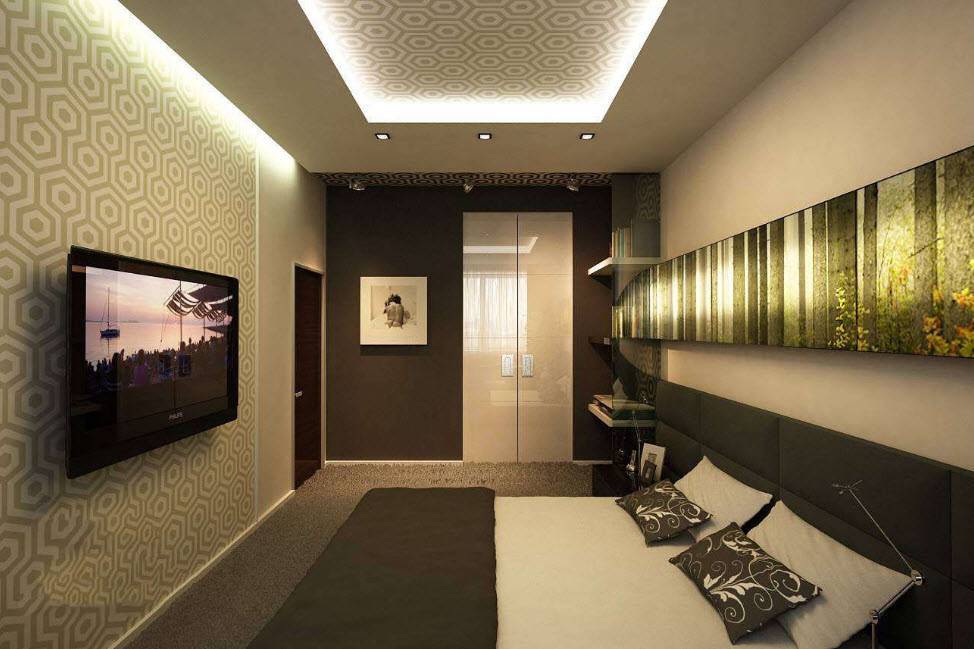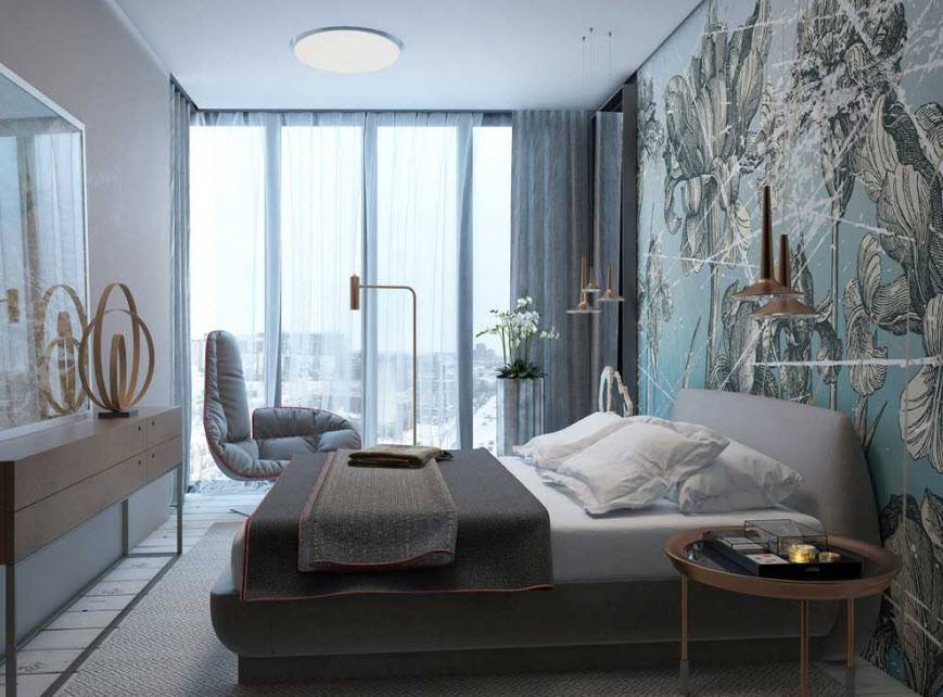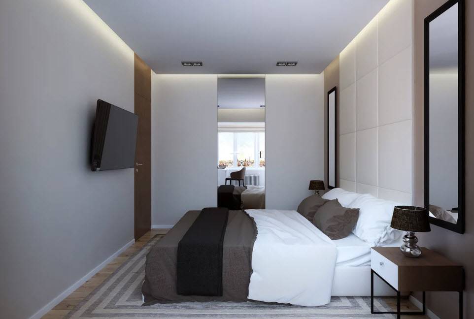 Красивая отделка узкой спальни в современном интерьереИсточник Etevois.ru