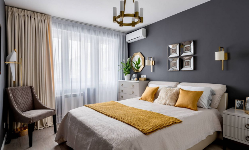 Оформление узкой спальни с декорированием и акцентамиИсточник dekormyhome.ru