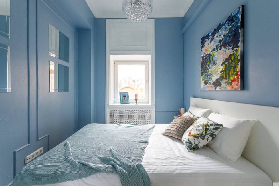 Светло-синяя узкая комната в современном интерьереИсточник roomester.ru