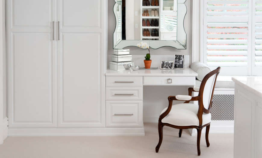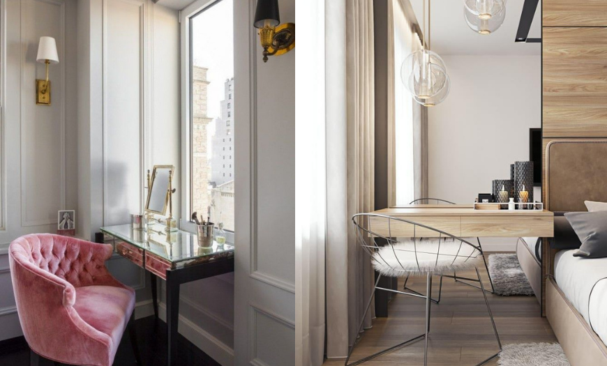 Туалетный столик и зеркало украсят любую классическую спальню. Концепции минимализма и ряда других направлений не позволяют включить в комнату будуарную часть из-за ее низкой функциональности.