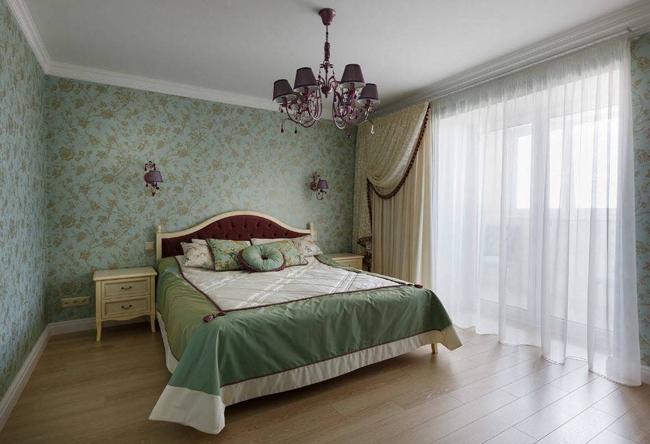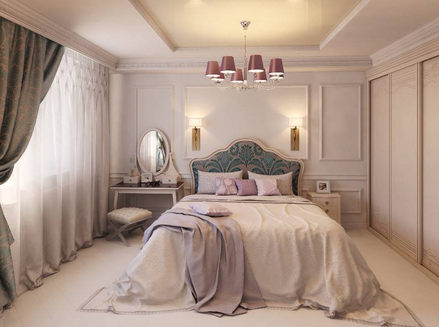 В таком направлении приветствуется симметричность линий, изящные дополнения, возможно лепнина. Спальный гарнитур строго белого или кремового цвета с глянцевой фактурой. Такие детали отражают окружающую обстановку, помещение приобретает свежесть и легкость.
