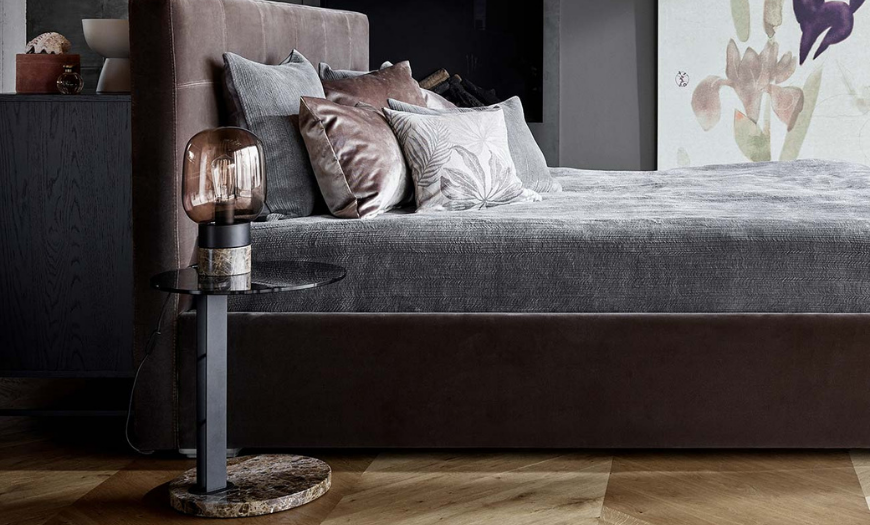 Кровать задает стиль всей комнаты, поэтому при ее выборе важно придерживаться направления, выбранного изначально. Ключевой деталью постели является ее изголовье, которое может стать главным акцентом дизайна узкой спальни
