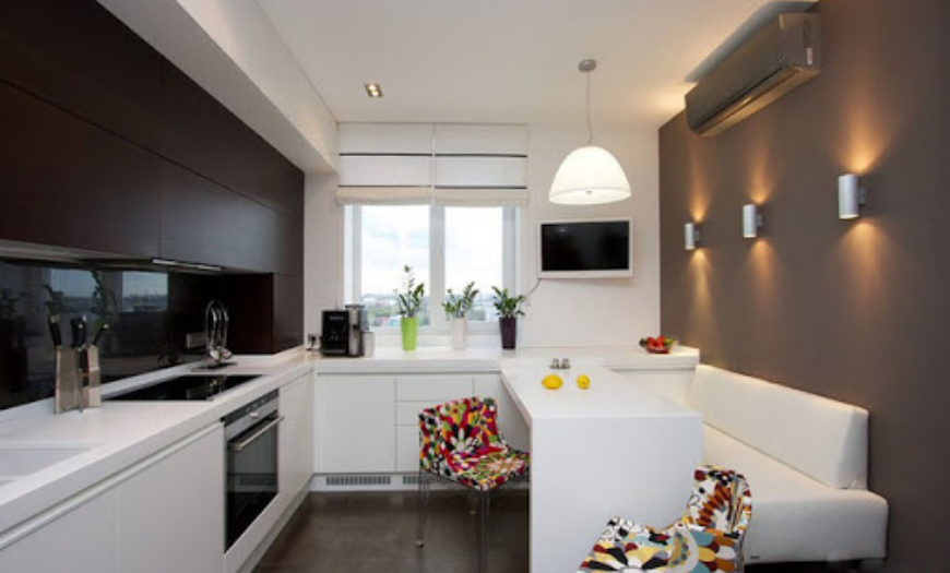 Если на этапе проектирования дизайн-проекта небольшой кухни все грамотно продумать, то недостатки маленького свободного пространства можно превратить в достоинства с помощью: