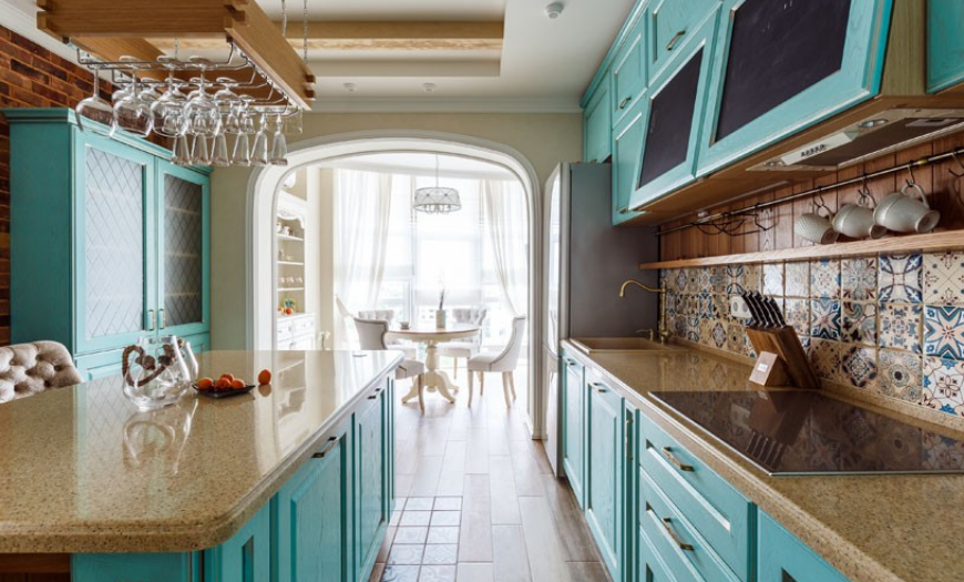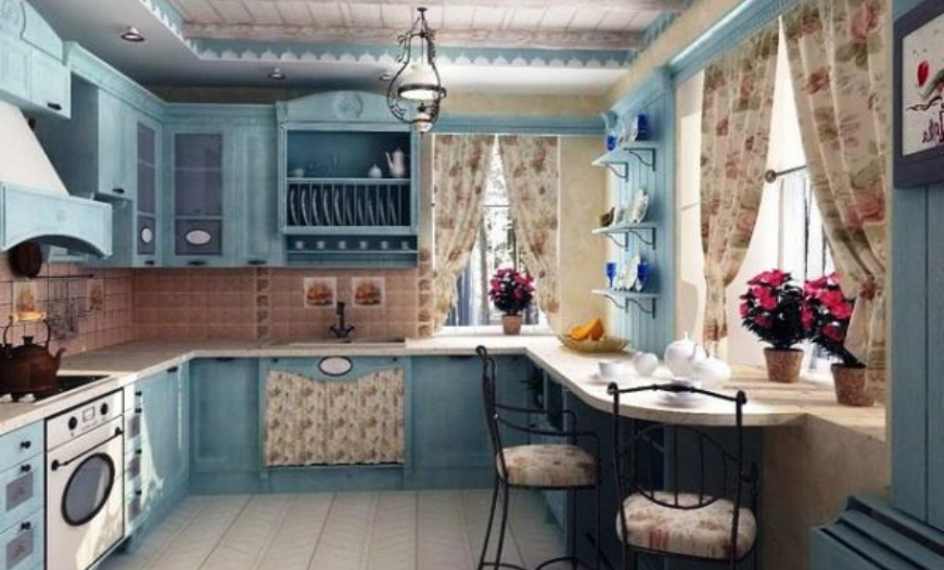 Актуальные оттенки дизайна маленькой кухни 2021 года – голубой, серый, кремовый, лавандовый, удачным образом являются стилеобразующей цветовой гаммой прованса.