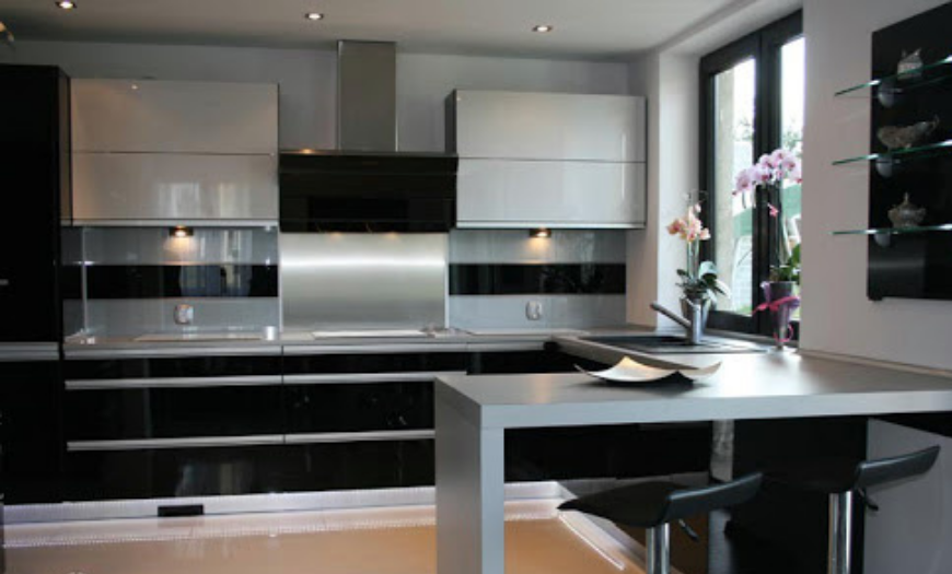 Теперь пришло время определиться со стилями и цветом. Стили модерн и хай-тек довольно схожи, просто хай-тек в большей степени изобилует металлическими деталями и синтетическими материалами, визуально приближаясь к космическим технологиям будущего. Модерн – современный стиль, но проще в исполнении, он не слишком сильно визуально шокирует тех, кто так прикипел к милой сердцу классике или деревенскому кантри. Многим людям попросту сложно психологически в один момент взять и перестроиться на ультрамодный лад, многие считают, что одно дело – полюбоваться фото кухни а-ля космическая станция, и совсем другое – сделать себе такой интерьер дома. Однако не надо бояться, иногда просто нужно сделать решительный шаг в технологичное будущее, и тогда оно покорит вас современным удобством, легкостью и «дышащим» пространством, которого никогда не даст старинная тяжелая мебель, нагроможденная вдоль стен маленькой кухни, столовой или гостиной.