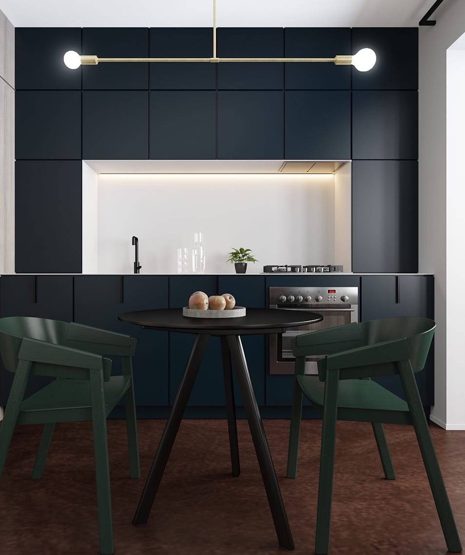 Совет! Если вы планируете создать модный дизайн маленькой кухни 2021, следует продумать функциональную роль углов. Мебельный ансамбль подбирают компактных размеров без громоздких декоративных элементов.