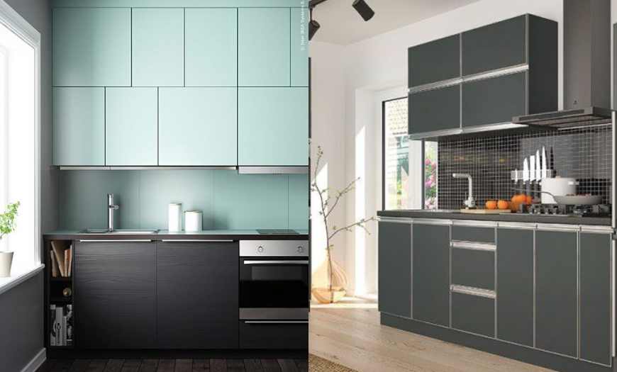 - Чаще всего дизайн изделий стандартный, это не индивидуально разработанная под конкретное помещение мебель. Массовое производство позволяет существенно снизить цену, но могут возникнуть проблемы с подгонкой под кухню, придется продумывать, как лучше расположить мебель, чтобы она смотрелась хорошо.
