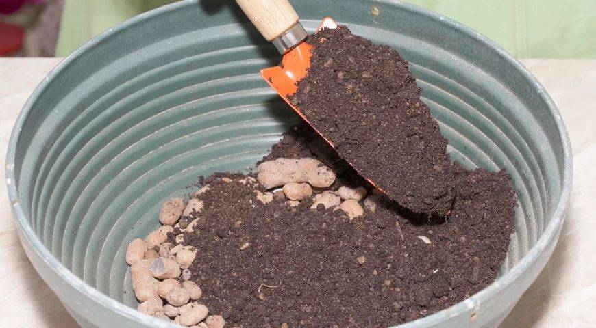 Субстрат обычно содержит торф, коровяк, хорошо перегнивший, листовую землю, а также глинозем и песок. Все составляющие берутся в равных частях. Можно приобрести готовый грунт, продающийся в цветочных магазинах.
