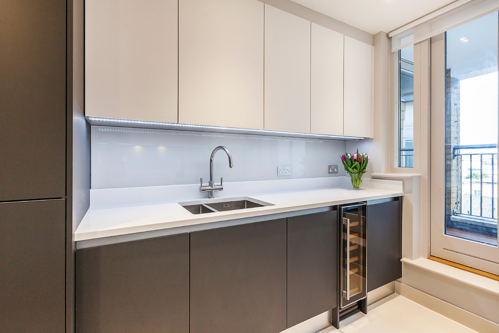 Освещение. В квадрате важна подсветка рабочих углов и срединное освещение. Освещение рабочих поверхностей, плиты и мойки можно обеспечить светильниками под полками или вдоль стен.