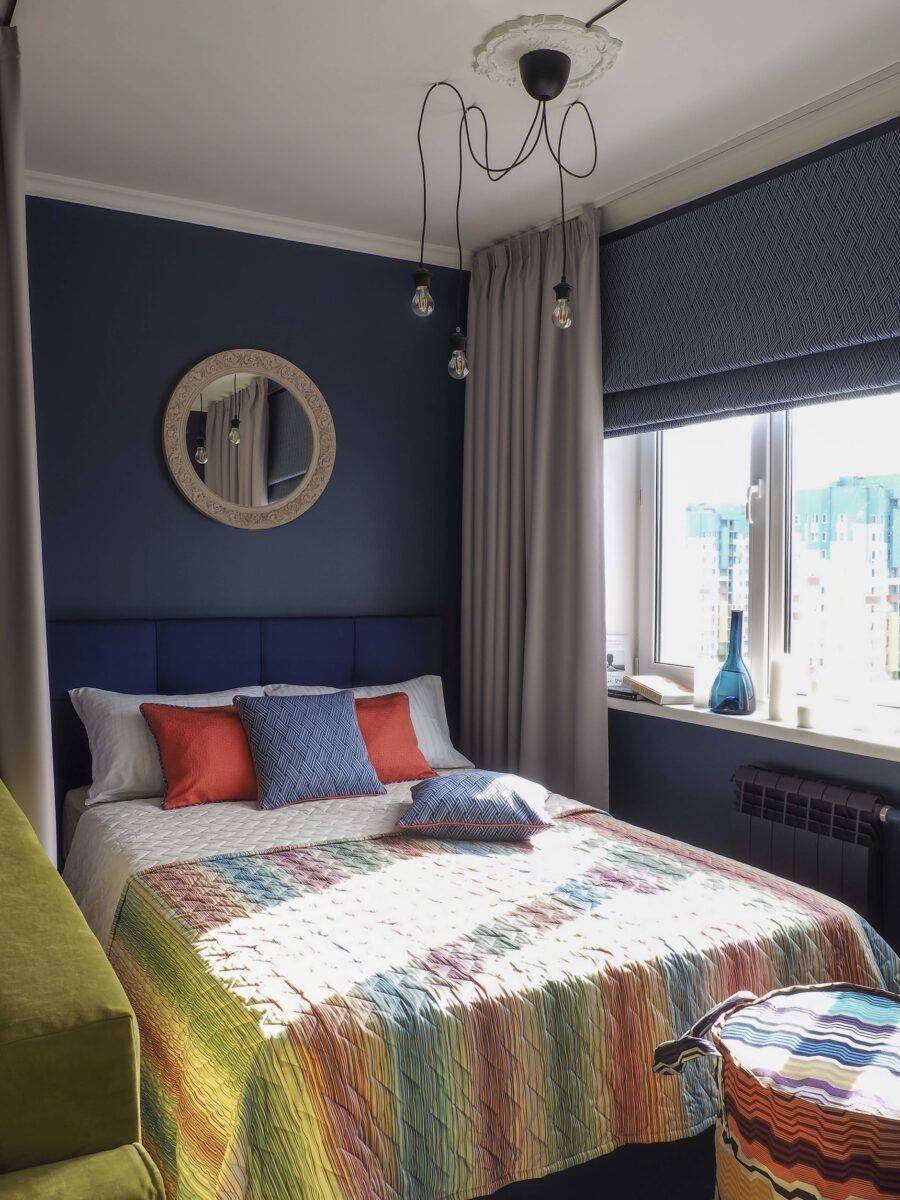 При всех своих недостатках, небольшая спальная комната 6 кв. м., имеет свои плюсы. Не все в восторге от больших комнат. Минимальное количество мебели, грамотно подобранное освещение и декор — смогут создать приятную атмосферу и способствовать здоровому сну.