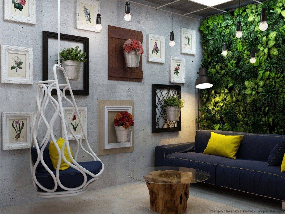 Совет! Чтобы добиться эффекта «промышленности», используйте в стенах/полах сочетание холодного тона с элементами более теплых, мягких оттенков.