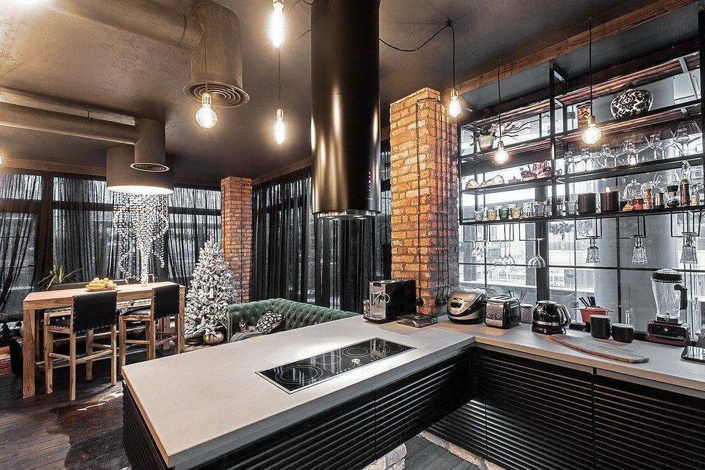 Как правило, кухня-лофт совмещена с гостиной или столовой