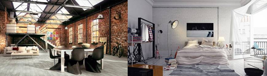 Для некоторых этот стиль промышленный, типично индустриальный. Он максимально похож на заводской цех, где расположились трубы и коммуникации, фактурные стены с кирпичной кладкой, грубая и простая мебель и предметы интерьера. Такое помещение скорее напоминает «берлогу» модного холостяка, которому не нужны лишние элементы, так как интерьер должен выполнять четко свою функцию, быть удобным и не ограничивающим. В таком помещении можно легко кататься на скейте или самокате, лежать в настоящем гамаке или зависать с друзьями на барной стойке, играя в дартс.