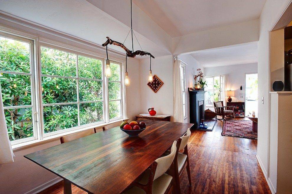 - Если есть возможность, то один или несколько таких светильников можно повесить непосредственно над столом. Металлическая штанга — отличное средство для их закрепления.