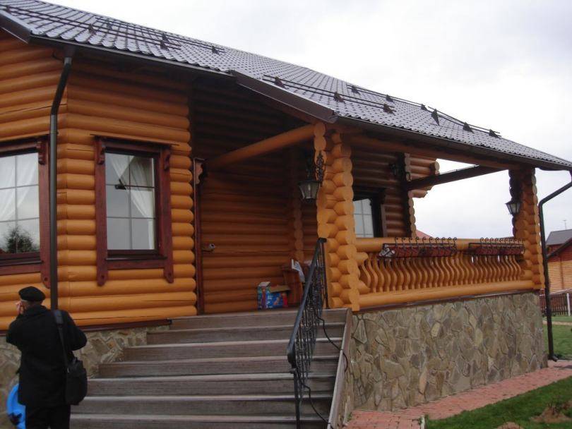 - Подгонку бруса, бревна или блок-хауса по цвету к стене следует делать после установки. Краска замажет полученные при монтаже дефекты, захватит часть стены, сделав вставку практически незаметной.