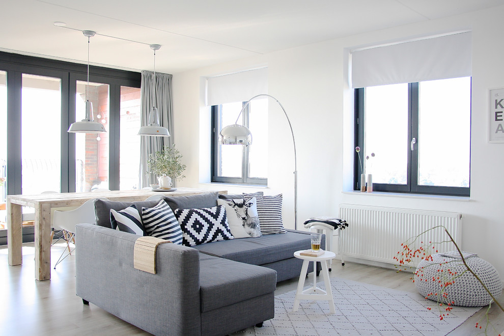 Светлая гостиная с интерьером в скандинавском стиле