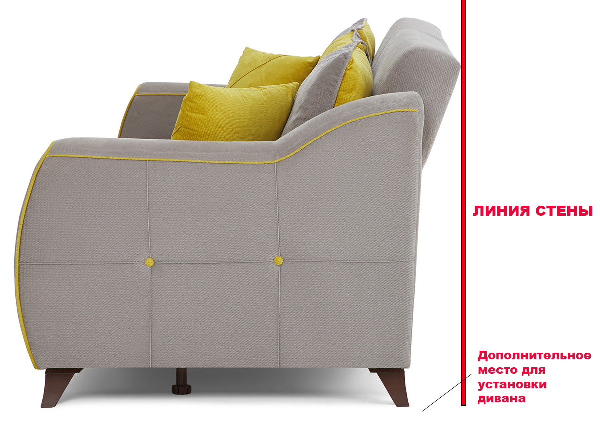 В этих примерах приведены размеры самых компактных моделей диванов с раскладыванием вперед. Механизм трансформации этих диванов называется «Аккордеон». Так же в примерах не учитывались отступы от приборов отопления. Но для приблизительной оценки эти примеры подойдут.