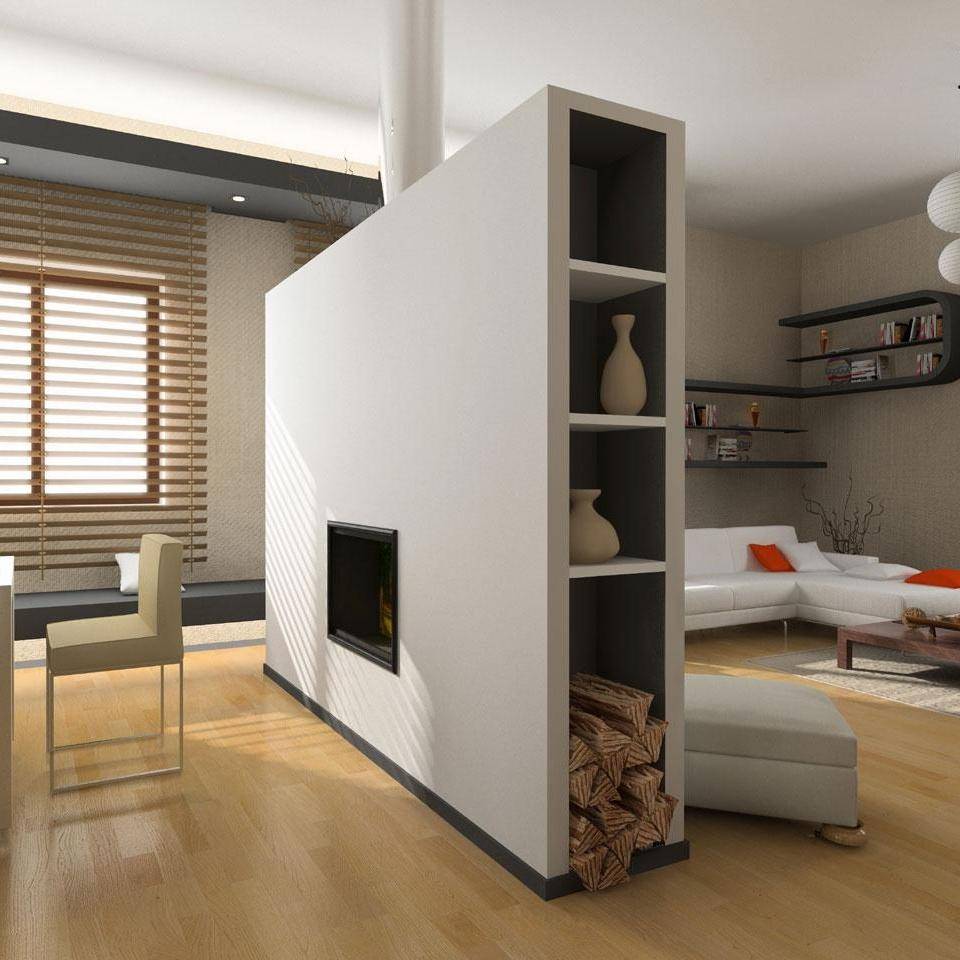 Также можно установить обыкновенные деревянные открытые полки, они будут и зонировать пространство и помогать хранить вещи.