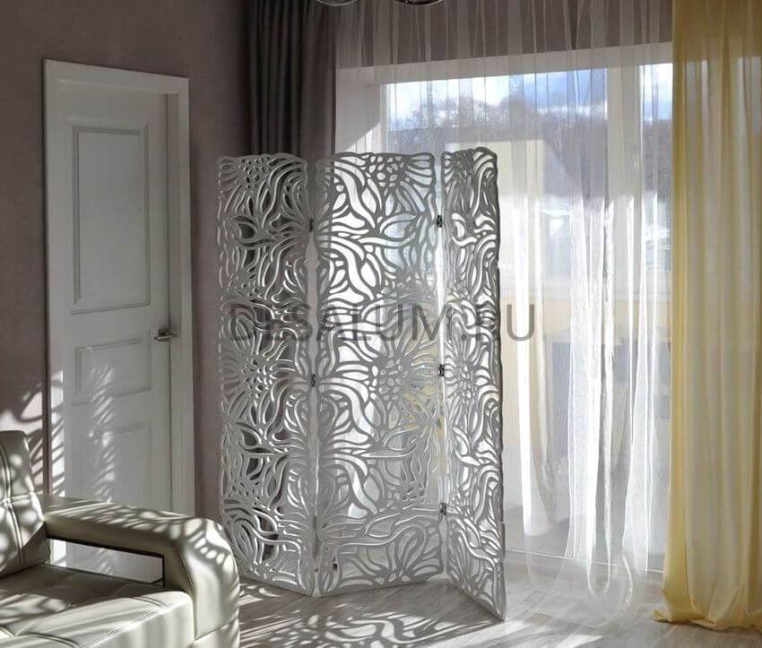 Важное отличие мобильных конструкций от стационарных перегородок – использование наиболее легкой древесины. В них нежелательны утяжеляющие элементы декора