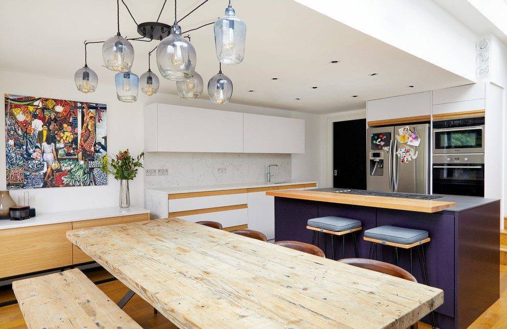 Фиолетовый сочетает в себе массу оттенков, его можно использовать в любом стиле, правильно подобрав палитру. Для модерна идеален воздушный сиреневый. Яркие индиго, аметистовый, ежевичный, баклажанный подходят смелому лофту и хай-теку. Нежные фиалковый и лавандовый лучше смотрятся в классическом стиле кухни.