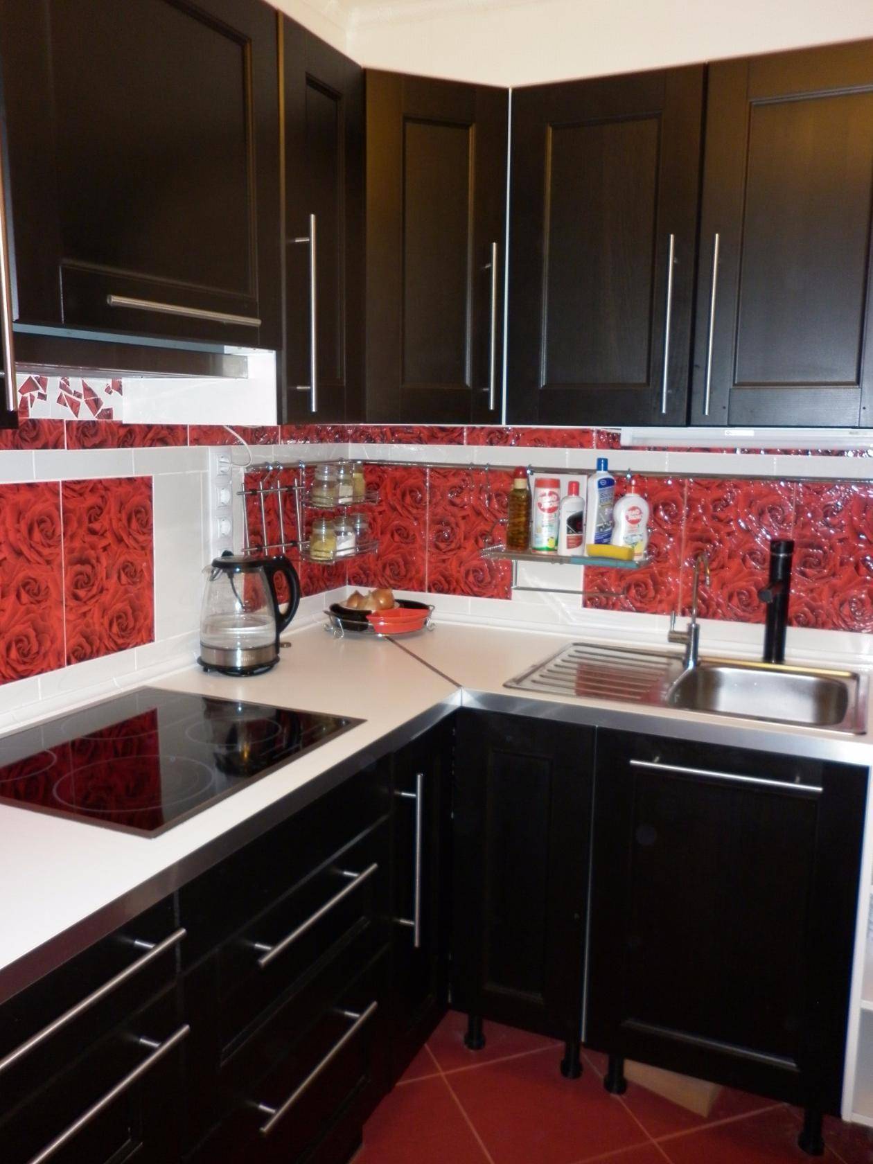 Декоративному элементу в дизайне такой кухни уделяется пристальное внимание, даже если кухонька маленькая
