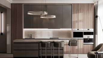 Темные тона выглядят брутально. Но если кухня небольшого размера, то стоит отдать предпочтение светлым фасадам или разбавить темный низ гарнитура белым верхом.