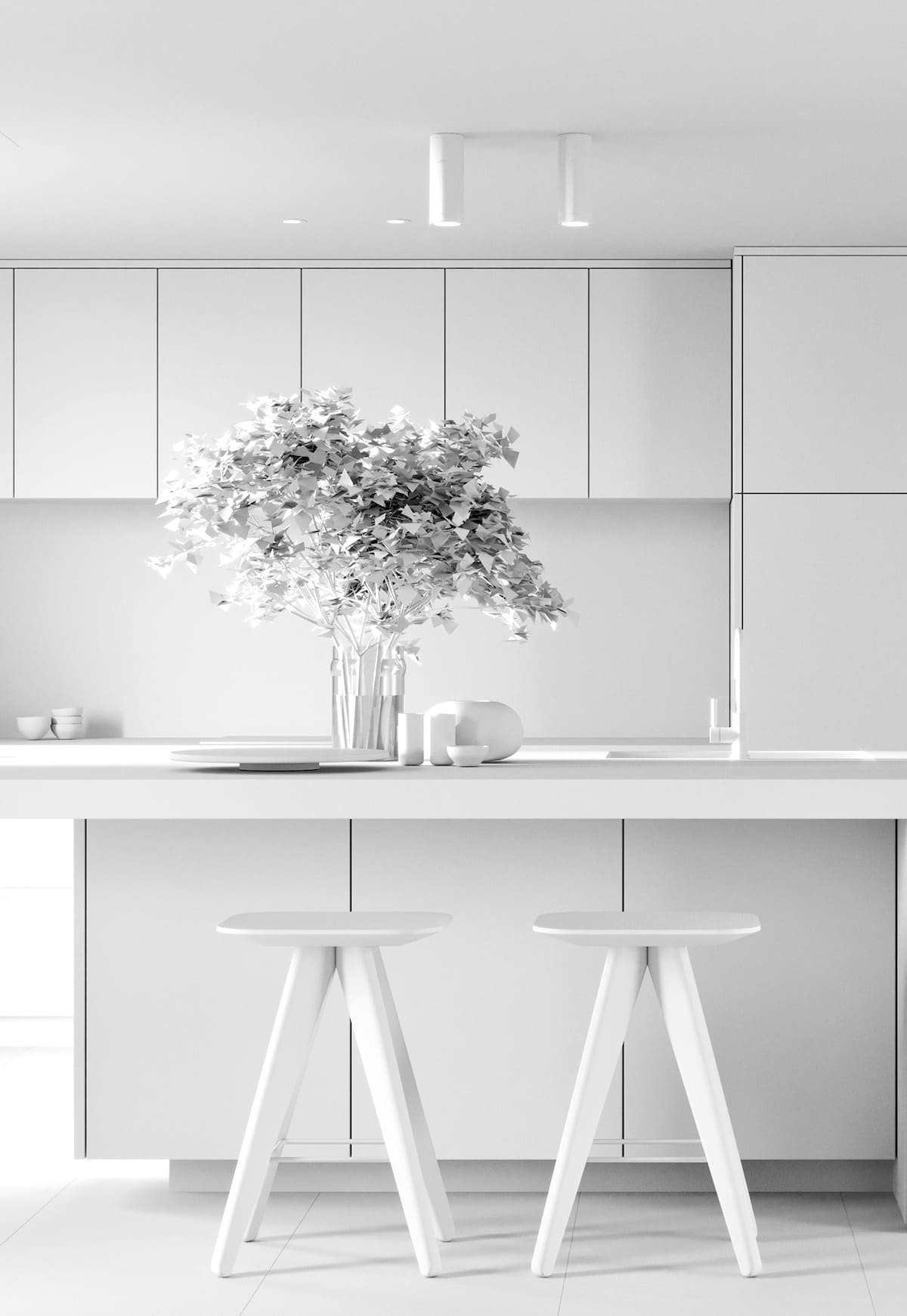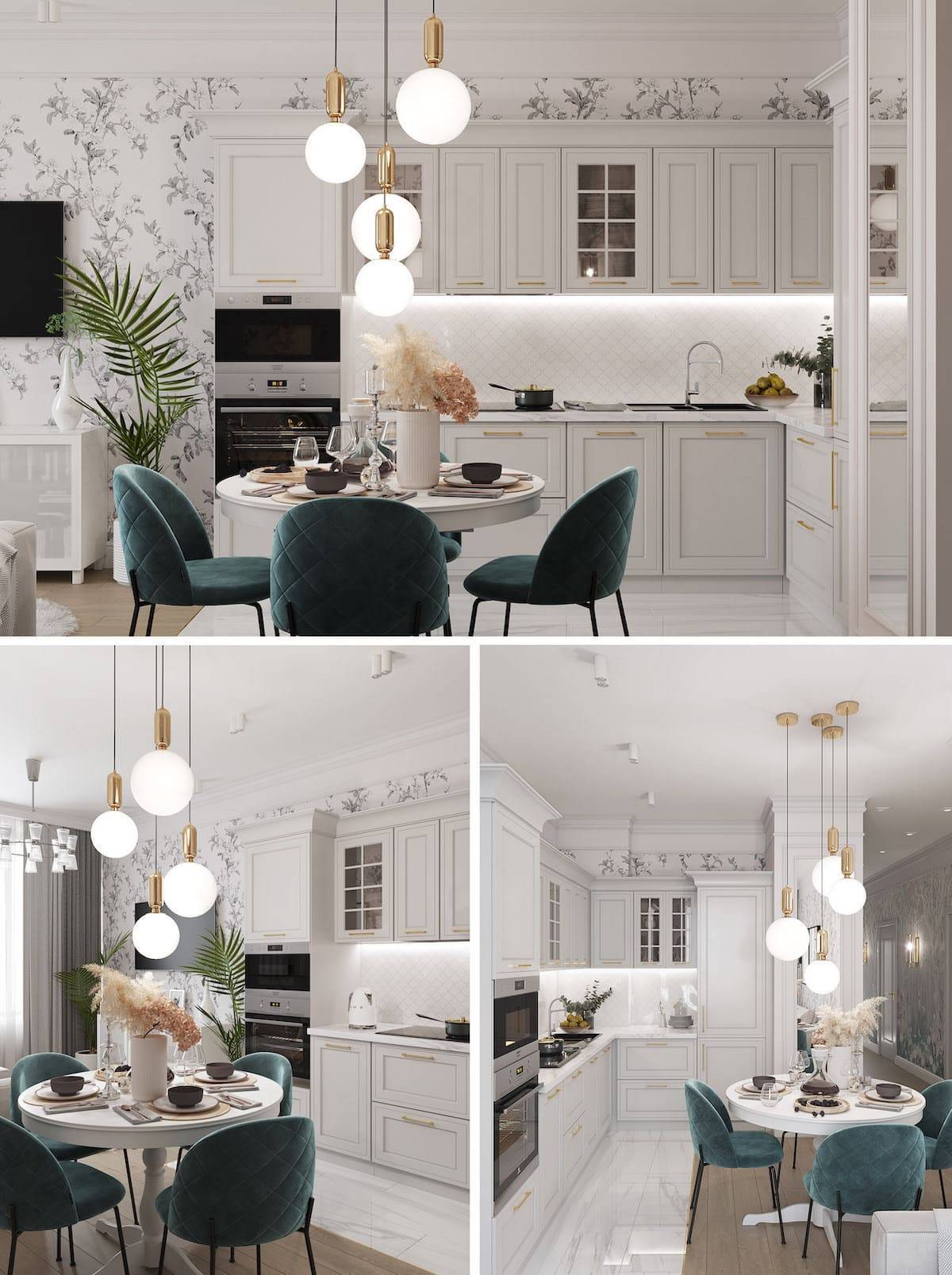 Выбор отделочных материалов для кухни 2022 в белом цвете