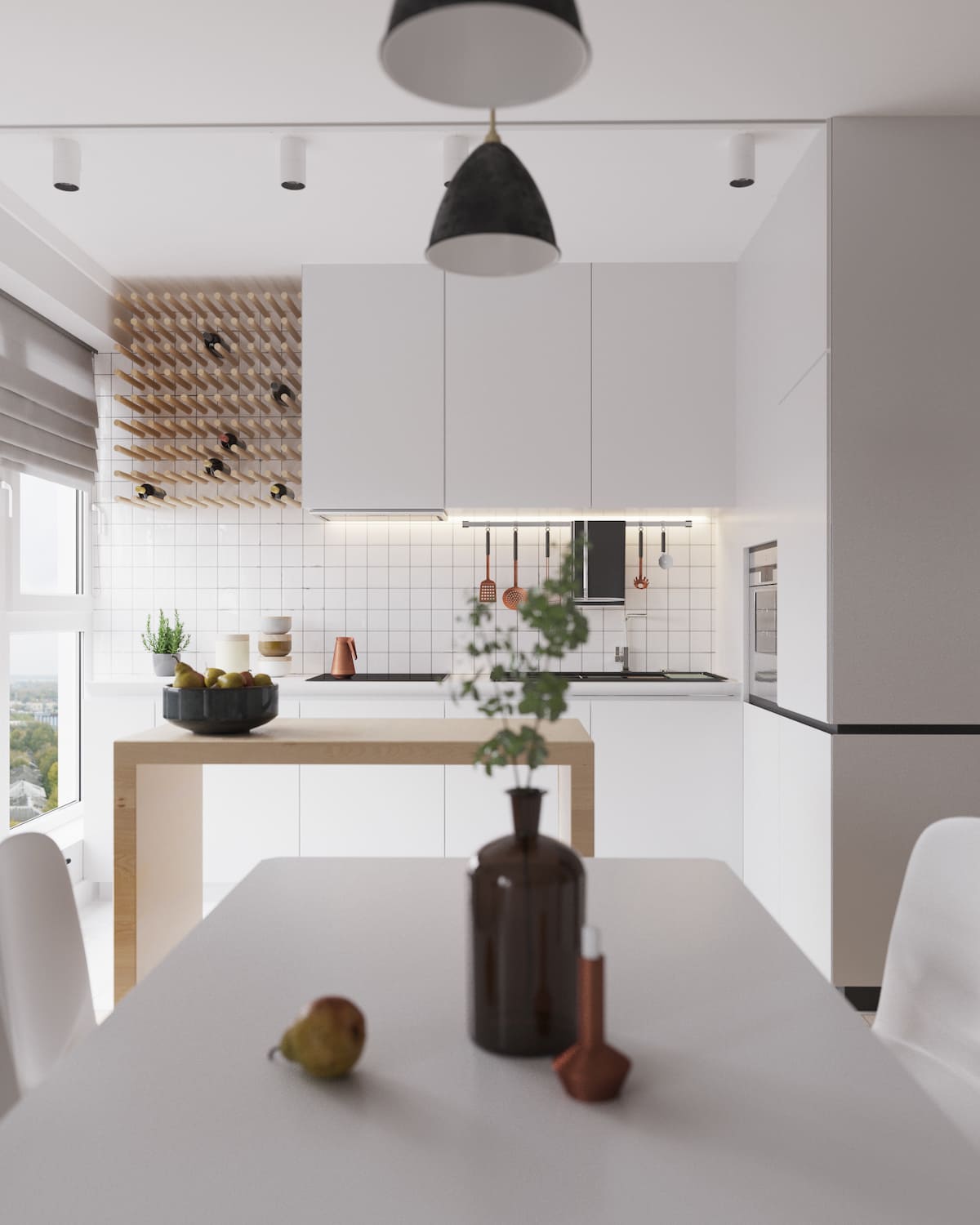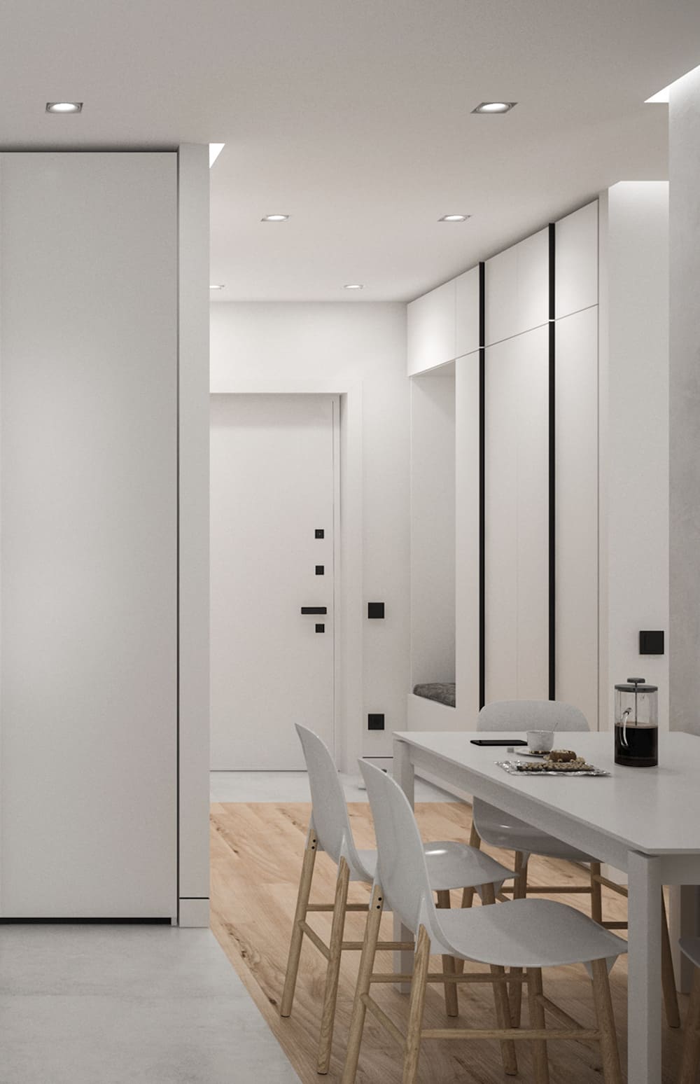 А если вам покажется что такая обстановка похожа на больничную палату, то это легко исправить добавив ярких аксессуаров или кухонной мебели.