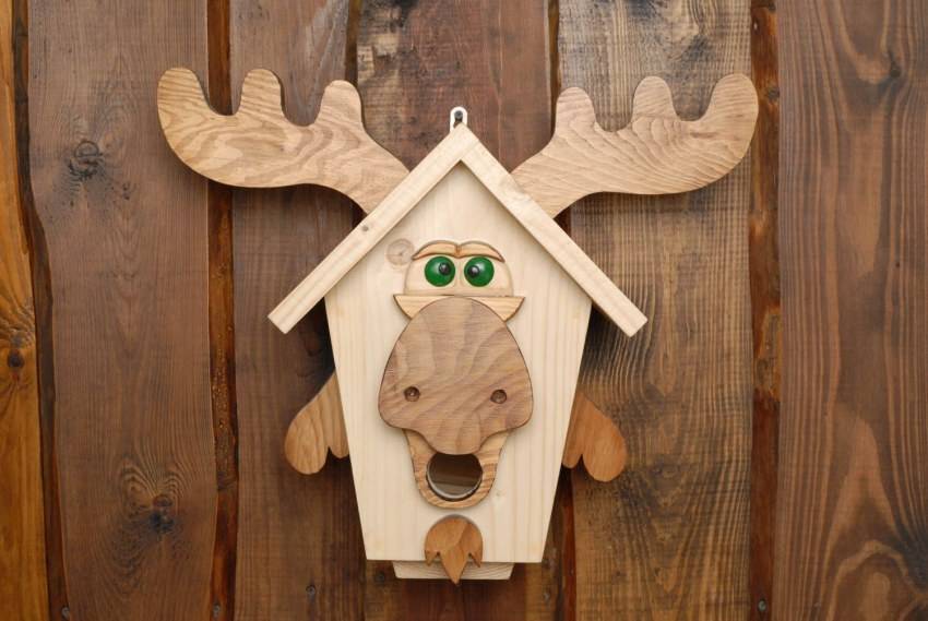 Ещё одной полезной поделкой из дерева для сада и дачи является кормушка для птиц. Вариантов дизайна для неё множество – от простых до сложных.