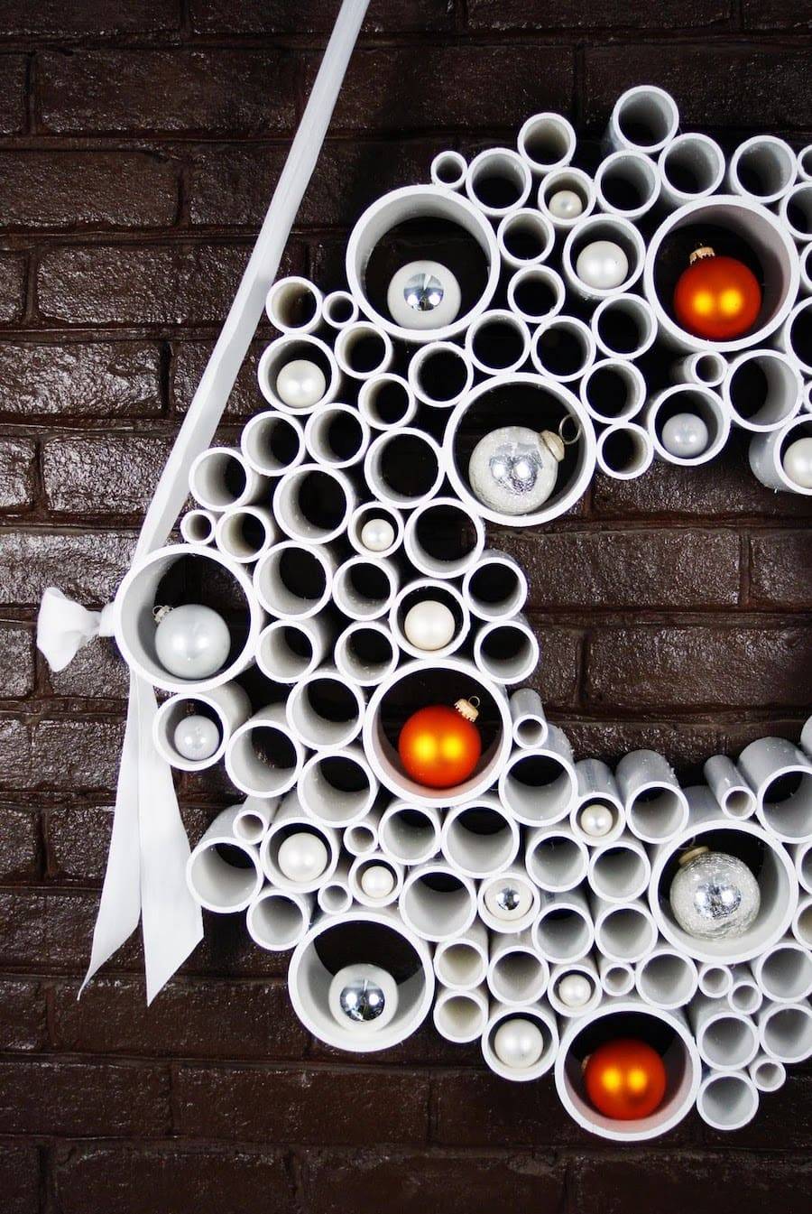 Простой, но очень оригинальный настенный декор из ПВХ труб