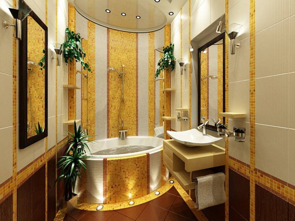 - кирпичный, ореховый и золотисто-каштановые тона влияют на повышение настроения человека, принимающего водные процедуры;