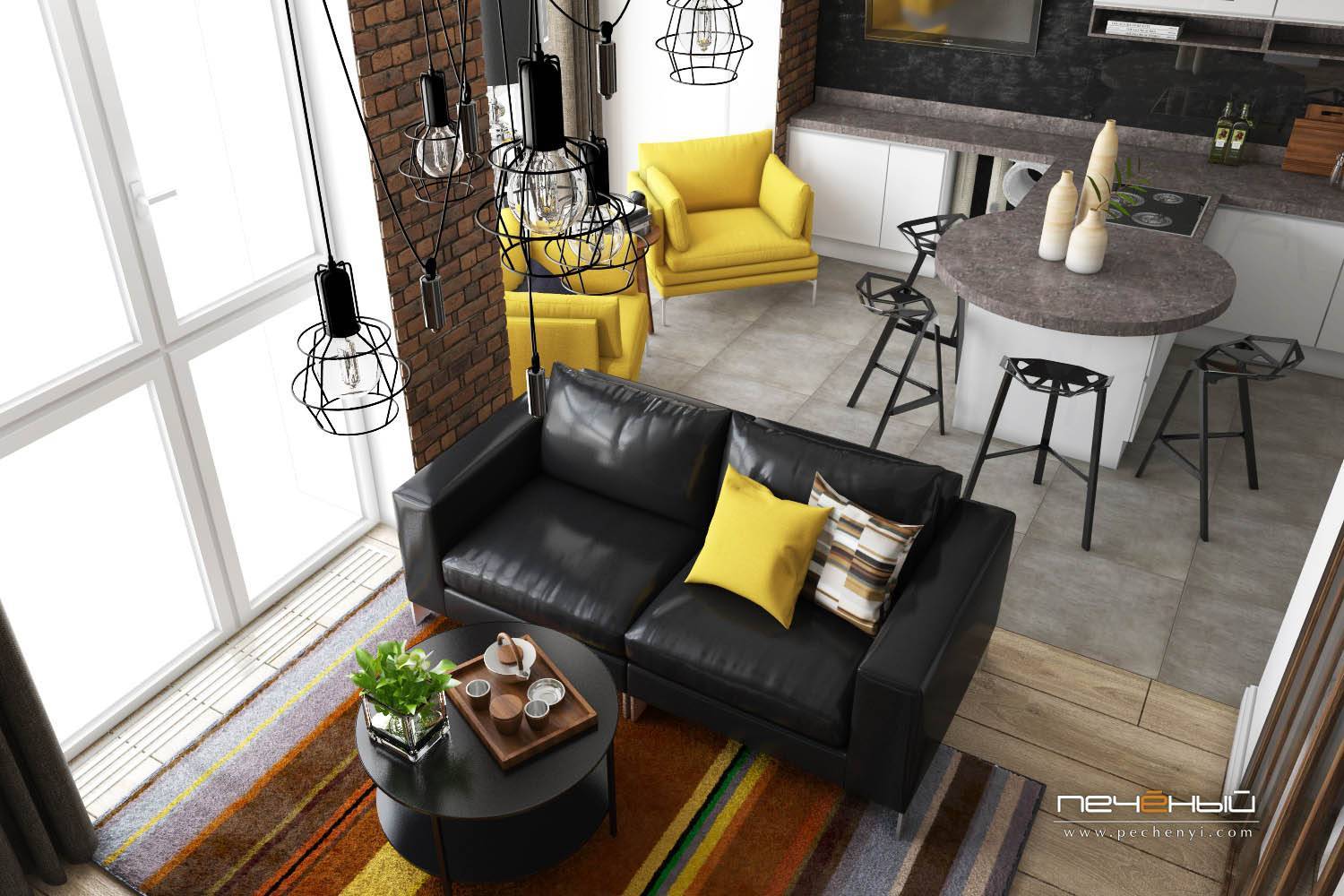 Здесь можно соединить гостиную, кухню и комнату – получится многофункциональная студия. Объединение двух жилых зон – удобно и выгодно для увеличения общей площади. В такой комнате можно принимать гостей и сделать большую зону для всей семьи.