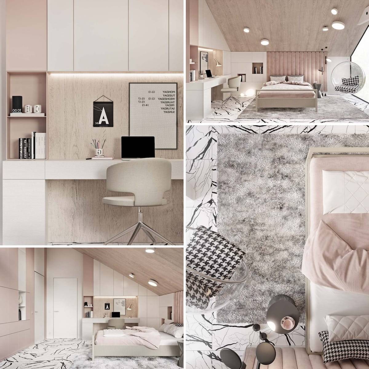 Милая и уютная комната для девочки в нежных розово-бежевых тонах