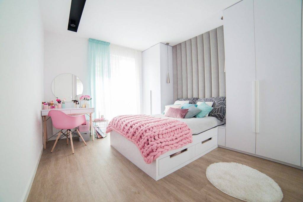 В первую очередь убедитесь, что у ребенка есть свободный доступ к кровати. Ведь такой предмет мебели используют не только для сна, но и для отдыха, дети на кровати слушают музыку или смотрят фильмы. Лучшее место для детской кровати — это уголок. Такое расположение у стен позволит ребенку чувствовать себя в безопасности и обеспечит ему уединение. Также стоит учесть, что дети часто вешают над кроватью плакаты с любимыми сказочными персонажами или повязками, и, разместив этот предмет мебели посреди комнаты, мы им помешаем.