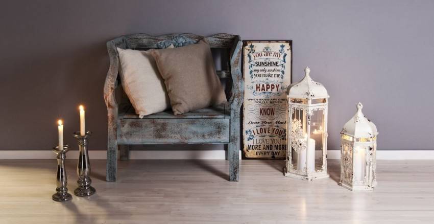 - Мебель должна идеально создавать ощущение старины. Сделайте её своими руками так, чтобы у гостей возникало впечатление, что она передавалась друг другу многими поколениями.