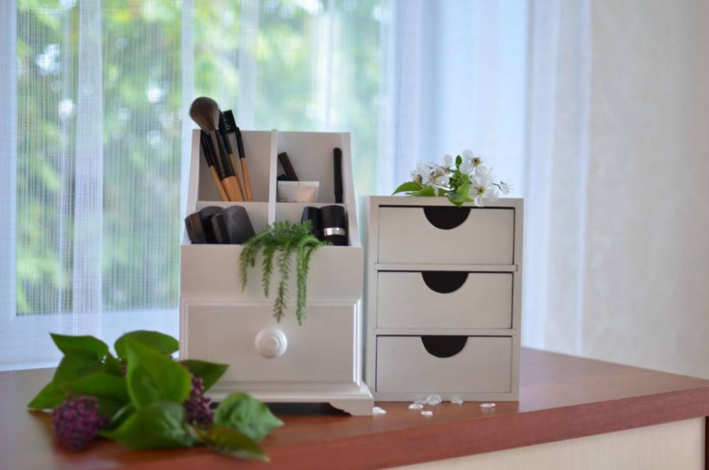 Размеры изделий отличаются еще большим разнообразием — от стационарных напольных до маленьких настольных органайзеров. Выбор размера комода напрямую зависит от количества вещей, которые предполагается в нем хранить. Функциональность изделия — главный критерий выбора.