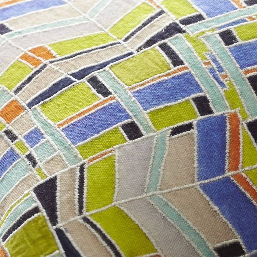 Ткань на подушке сочетает в себе все весенние тренды: натуральность, графичность, холодные тона.
