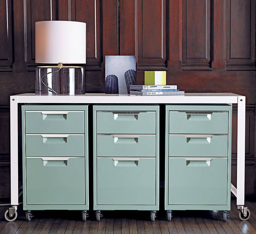 Следующее изображение показывает, как мятного цвета сейфы могут изменить даже самое строгое помещение и внести в него нотку свежести.