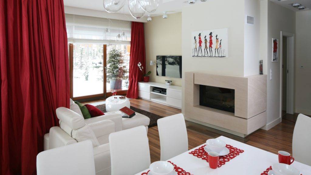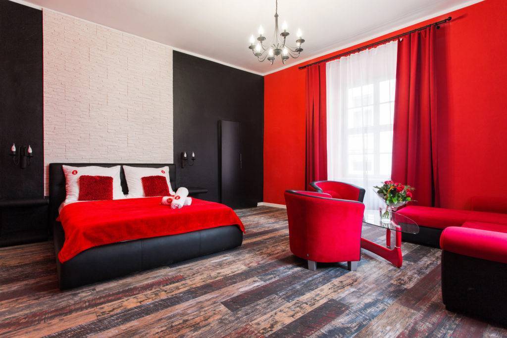 Кроваво-красный в свою очередь приковывает взгляд. В то время как небольшое количество ярких пятен в квартире освежает, доминирование насыщенного агрессивного тона – угнетает. Обитатели дома могут ощущать резкий упадок сил, постоянное переутомление, стресс.