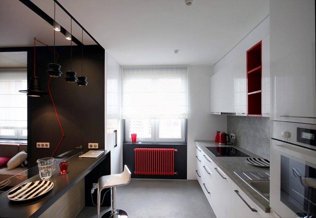 Красный обычно доминирует над всеми остальными цветами и заполняет все пространство. В связи с этим не рекомендуется его использовать в кухнях размером менее 6 м2. В таких ситуациях лучше предпочесть более спокойные оттенки: вишневый, гранатовый, бургундский, бордо. Также стоит отказаться от подобного стиля, если окна кухни выходят на юг и в ней всегда жарко.