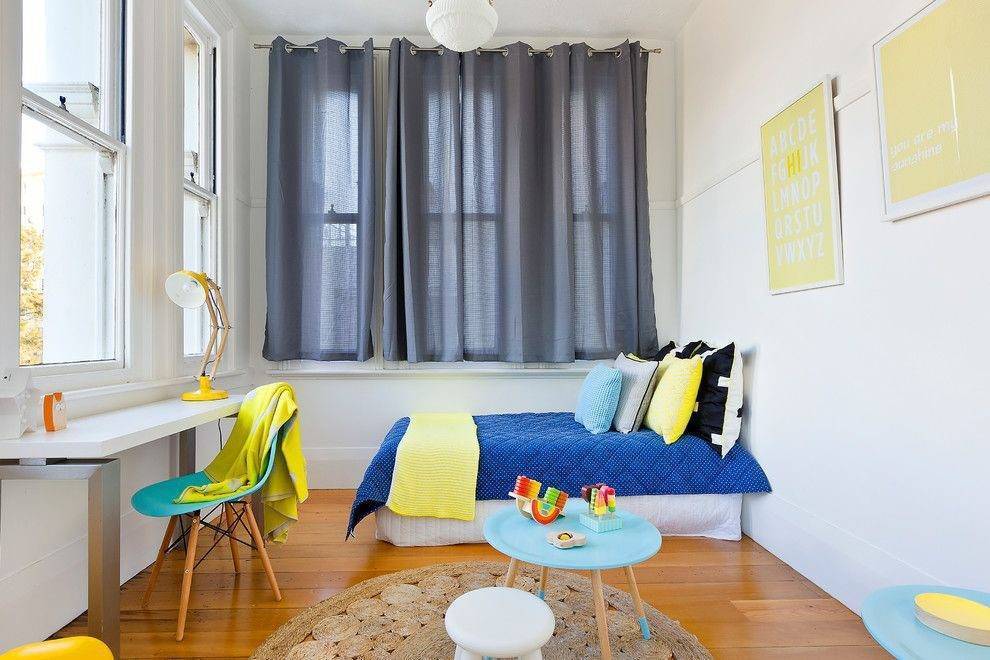 Не следует использовать тяжёлые многослойные гардины. Лучше повесить облегчённые натуральные шторы в единой цветовой гамме с общим интерьером. Если места совсем немного, рекомендовано отказаться от части мебели и оставить свободное пространство.
