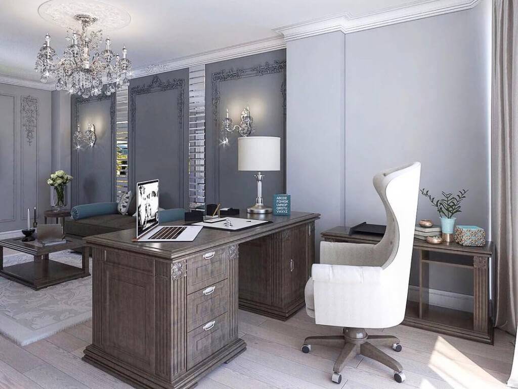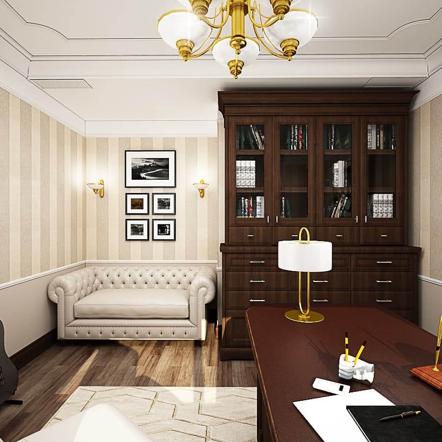 Стиль классика в интерьере рабочего кабинета наиболее приемлем, поскольку свидетельствует о состоятельности и респектабельности хозяина. Выдержанный английский интерьер темного дерева – открытые книжные шкафы вдоль стен, тяжелый дубовый рабочий стол и мягкий диван или пара кресел – определенно способствует налаживанию профессиональных контактов и работоспособности. Чтобы избежать излишней мрачности обстановки, используйте более светлые, натуральные древесные оттенки и цветовые дополнения – красный, зеленый и синий. Для приверженцев современных интерпретаций подойдет стиль в интерьере «современная классика» – сочетание традиционных правил с современными веяниями.