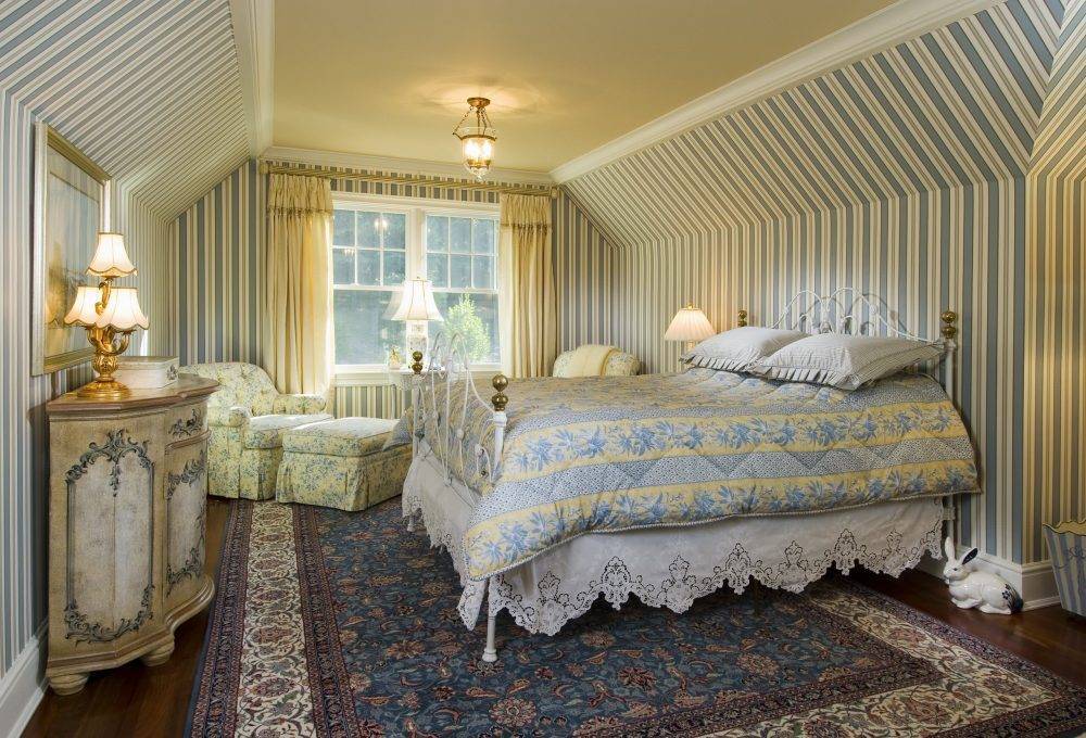 Спальня в деревенском стиле выполнена с изящным французским шармом
